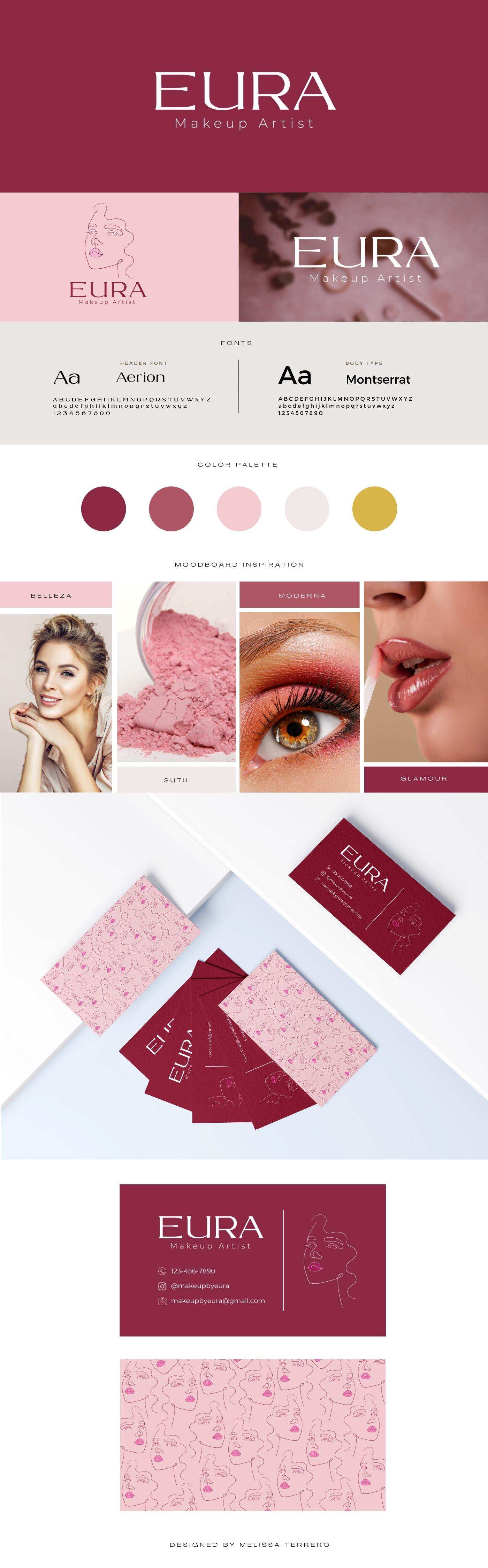 For Eura, a rising makeup artist, I crafted a personal brand that blends elegance and confidence. The identity combines soft tones with bold typography to reflect both professionalism and creativity. The custom business card extends this visual language — simple, stylish, and made to leave a lasting impression.